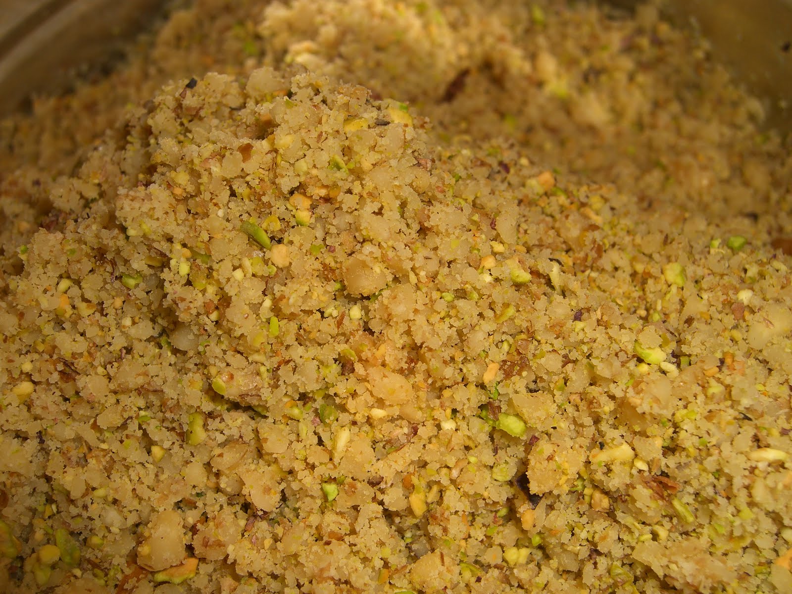 I grabbed the recipe from here, and went to work! I used walnuts and pistachios (and had a moment of temporary insanity when I was going to use cashews, odd) to fill the layers. These two nuts work really well together.